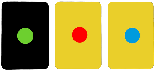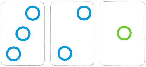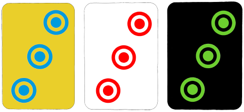 Három kártya nem Terc, ha valamelyik tulajdonságot vizsgálva elmondhatjuk, hogy nem mindegyik különböző, vagy nem mindegyik egyforma. A 4 tulajdonságot külön-külön kell vizsgálni. Ha kérdésed van a játékszabállyal kapcsolatban, tedd fel itt: kérdésem van.